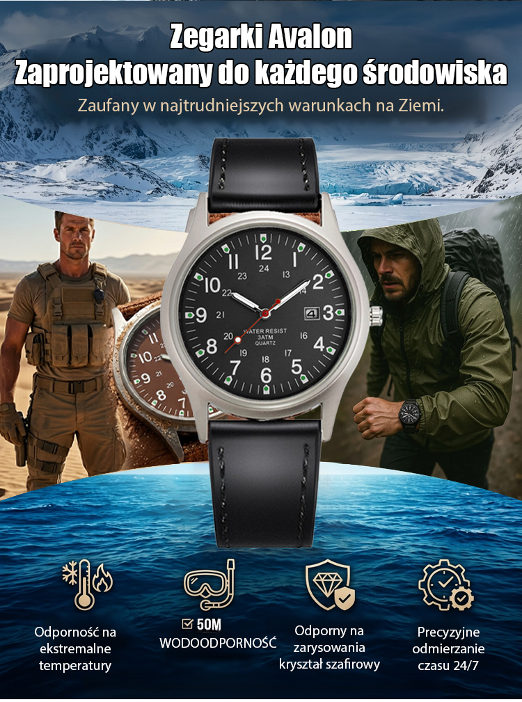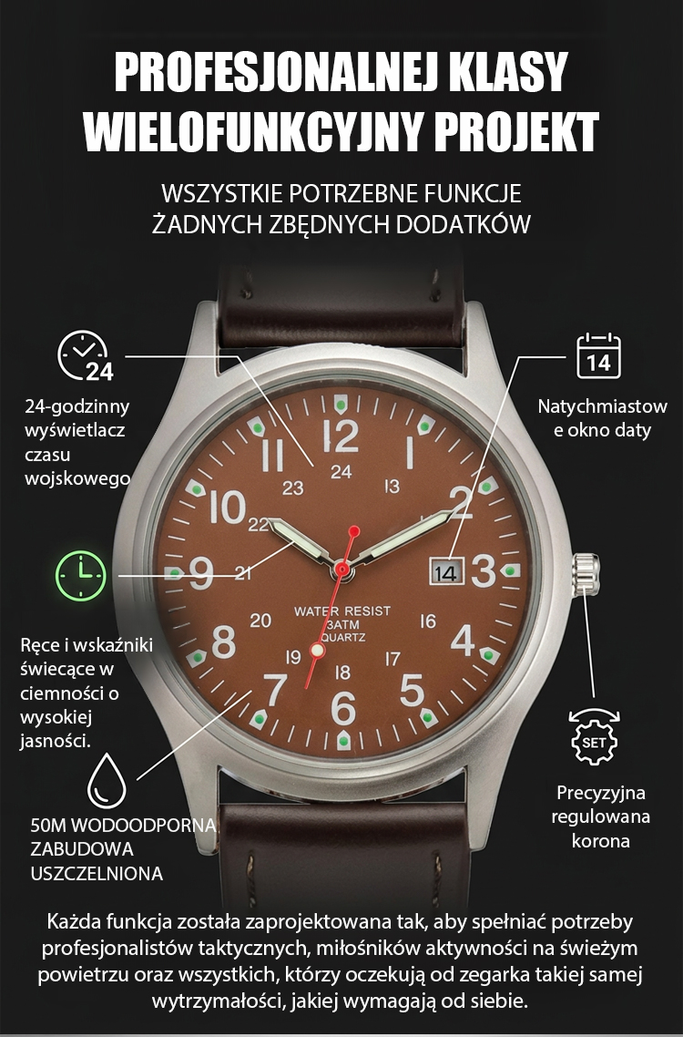 ✅Precyzyjny mechanizm 24h! Nieważne czy mróz czy błoto, nigdy nie spóźnia się o sekundę!🛡️Silne podświetlenie i wodoodporność do nurkowania. Twój najbardziej niezawodny partner w ciemności i pod wodą!