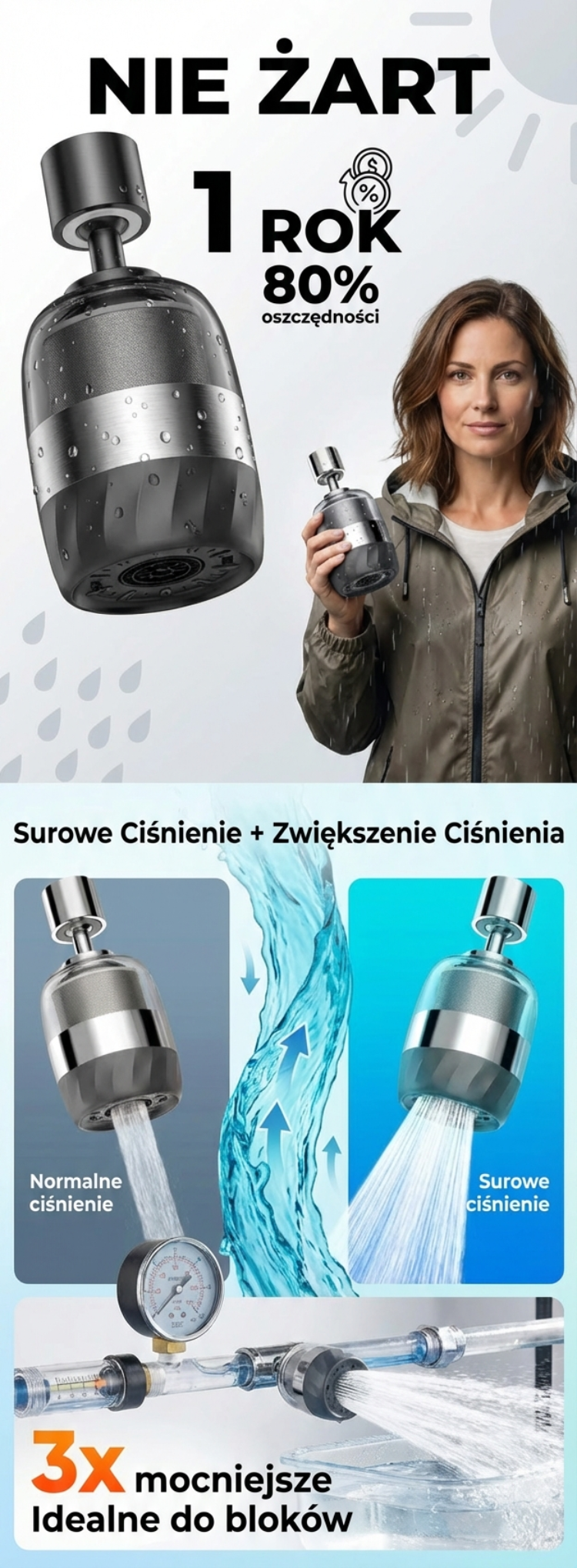 🛡️Filtr węglowy, usuwa chlor i rdzę, po filtracji tak samo bezpieczny jak woda butelkowana - w zestawie zapasowy wkład