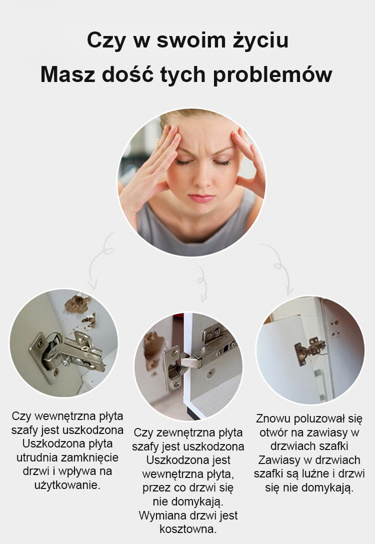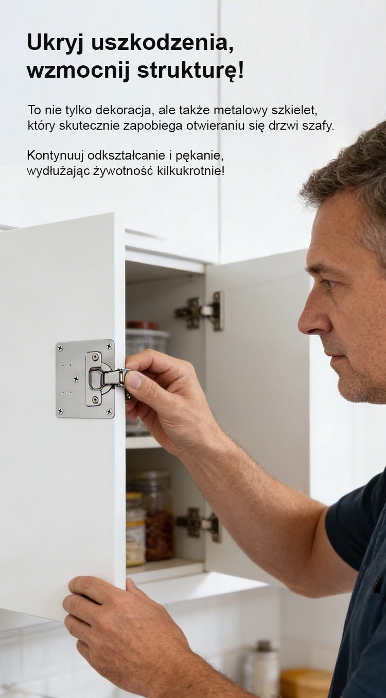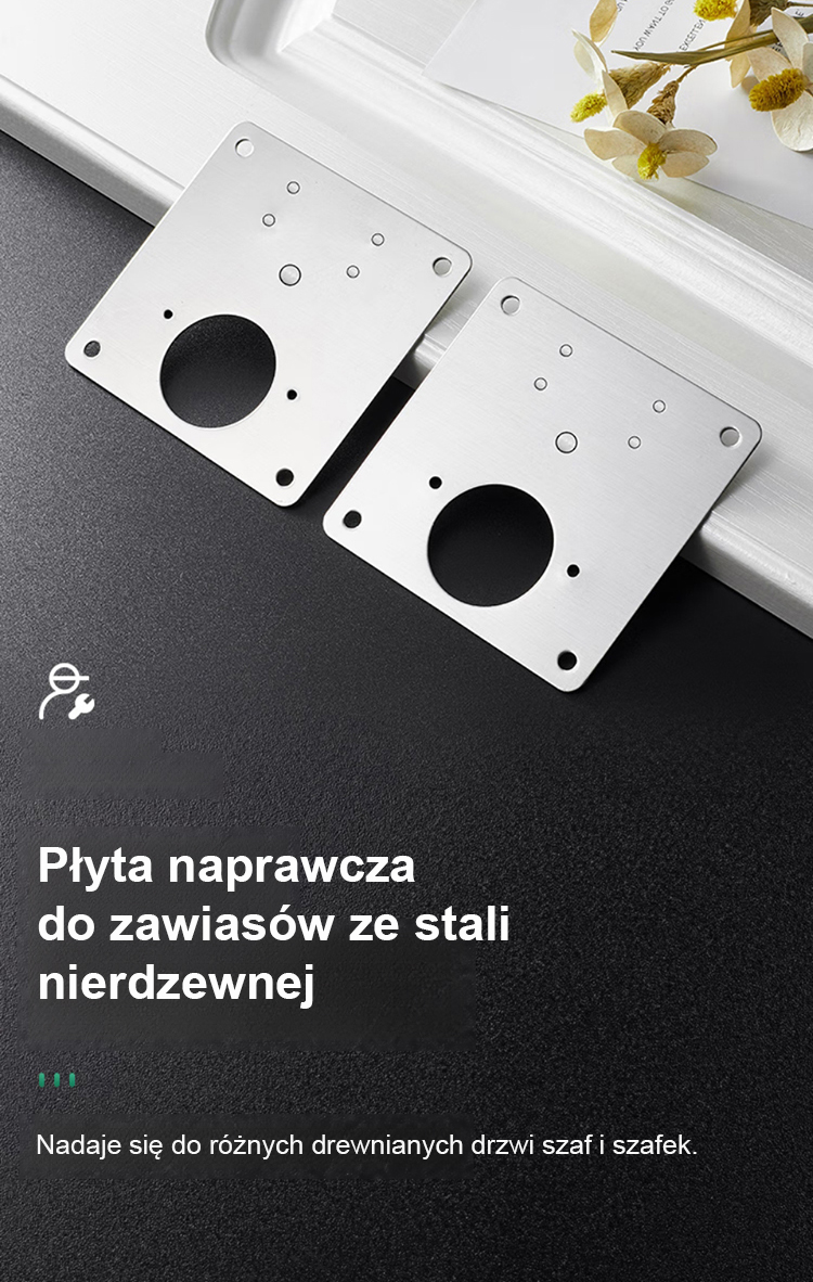 💥 Rozwiąż problem luźnych drzwiczek w 1 minutę! Wzmocniona stalowa płyta, zakrywa uszkodzone miejsce, wielootworowa konstrukcja, kompatybilna ze wszystkimi zawiasami na rynku, bardziej wytrzymała niż oryginał 💪