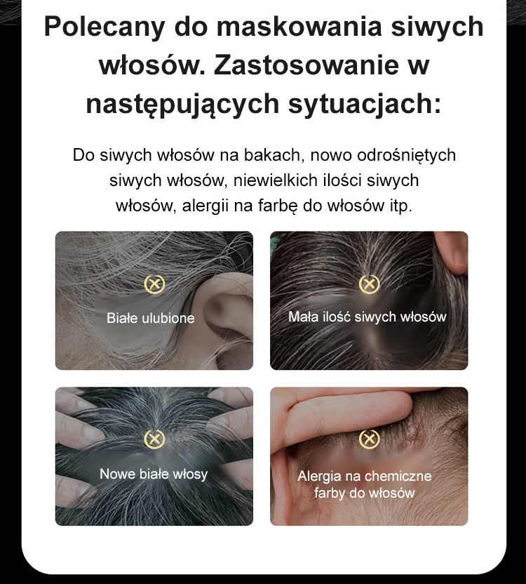 ⚡️Żegnaj, kłopotliwe siwe włosy! Wykorzystuje mikroskopijny roślinny pigment, porównywalny z naturalnym odcieniem włosów. Nie traci koloru nawet podczas obfitego pocenia się i deszczu💼 Wystarczy nałożyć, aby zakryć siwe włosy, a wieczorem zmyć podczas mycia głowy