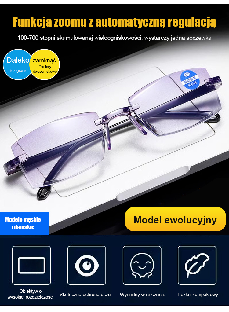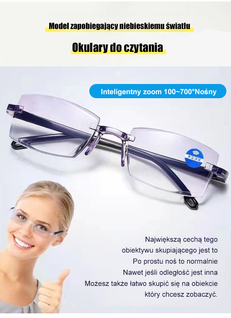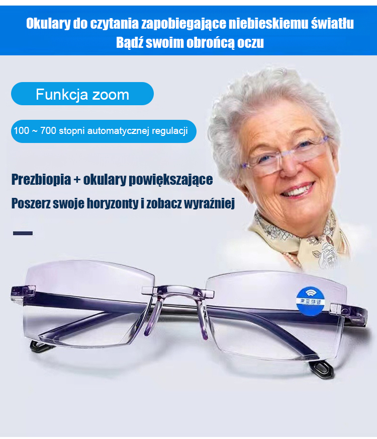 📱Tarcza Ochronna dla Oczu: Okulary do Czytania Blokujące Niebieskie Światło z Telefonu, Koniec z Bólem Oczu! Okulary z Automatycznym Fokusem (Czytanie, TV, Jazda)