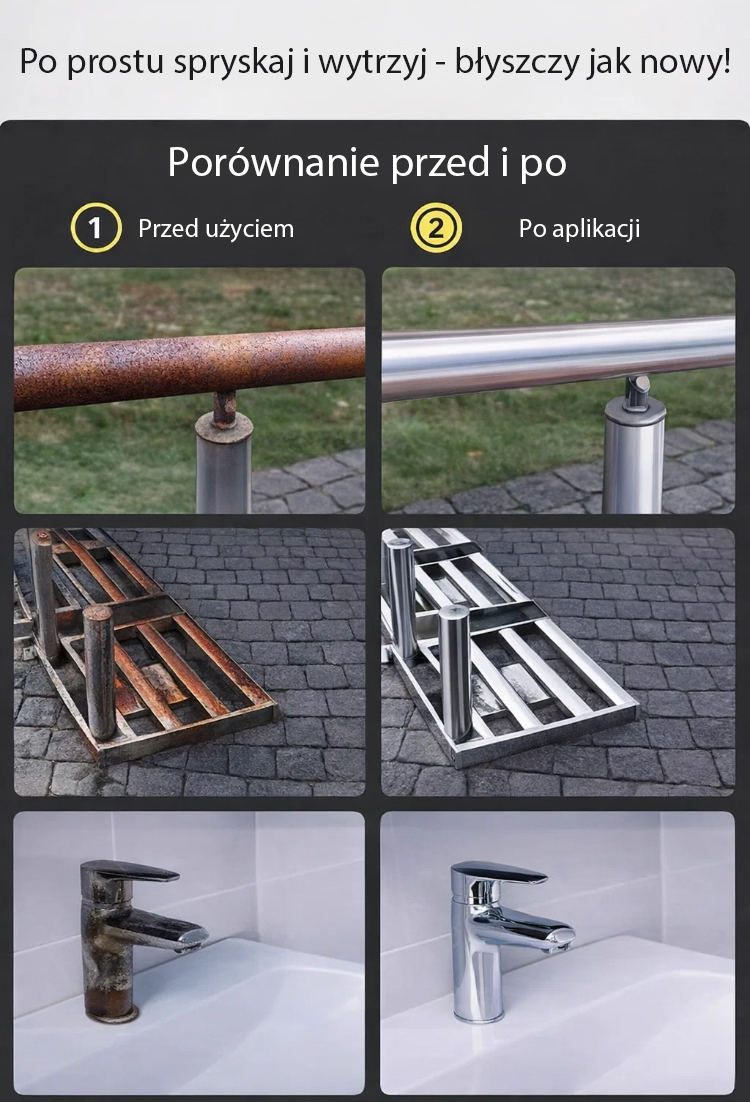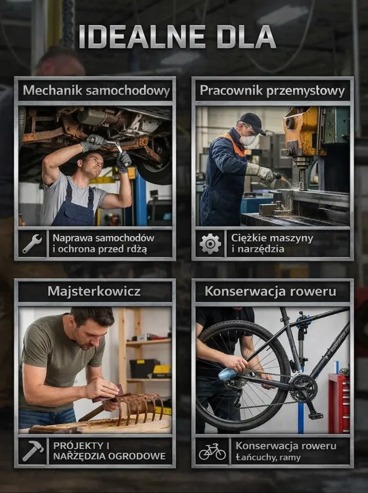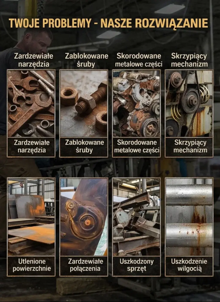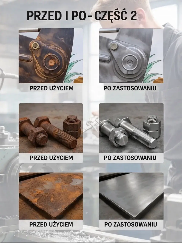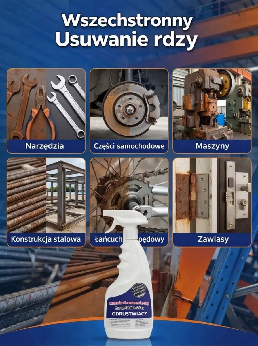 🛠️ Wystarczy jeden spray: rdza sama się rozpuszcza, nie uszkadza materiału, nie drażni skóry! 🌟
